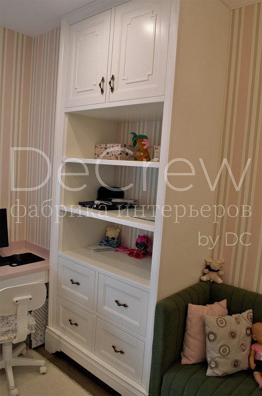 Используются специальные лакокрасочные материалы не вредные для детей, прошедшие высокие стандарты ISО. Cтекла на панорамных дверях бронированные. Двери без замков. Компьютер и монитор приволок отец. Диван по индивидуальному размеру выполнен смежной фирмой.