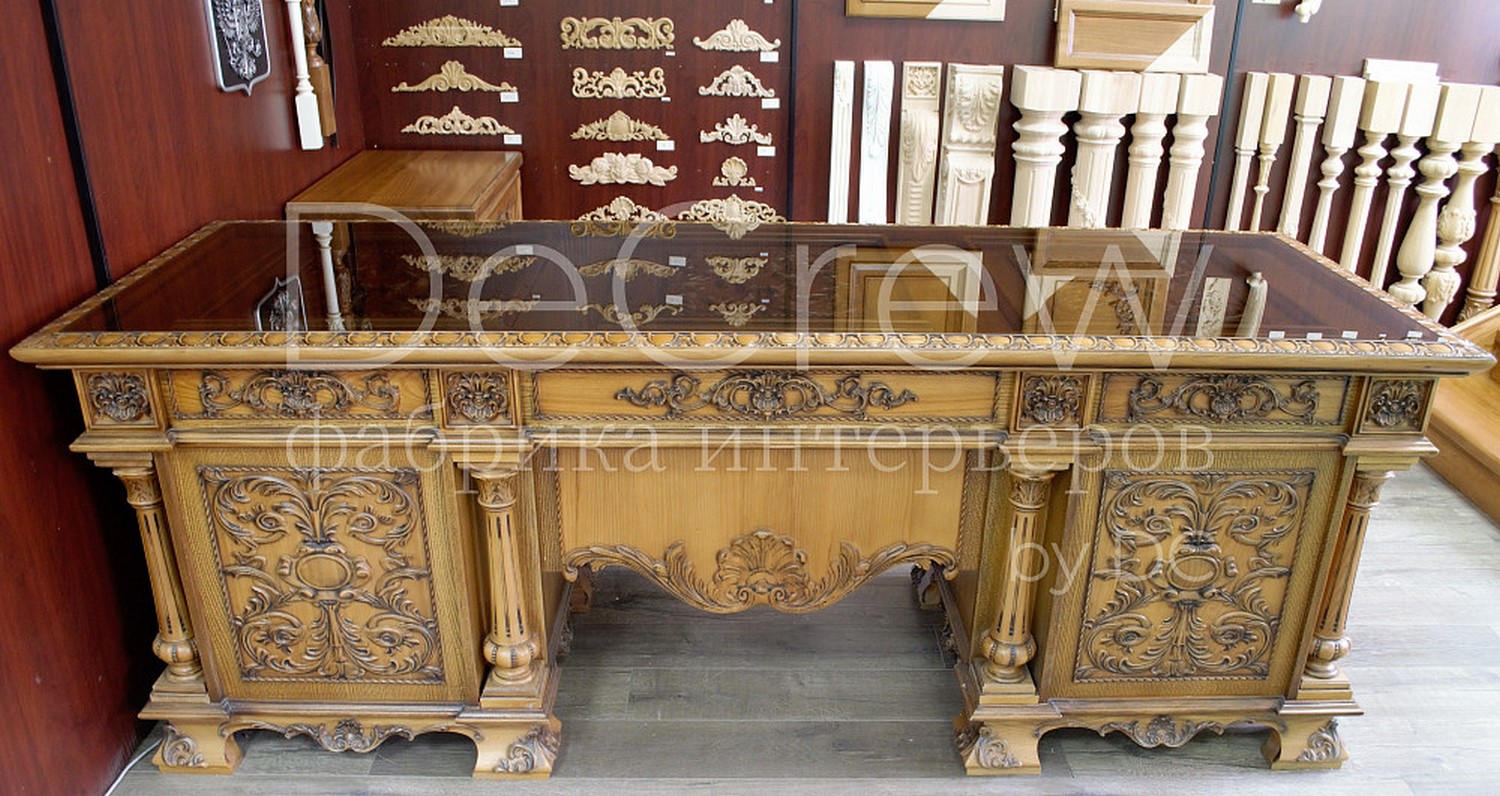 Столешница стола изготовлена так же и без стекла и камня, с коженной вставкой или специальной накладкой. В комплект можем быть включена тумба под орг. технику. Такие дела.Характеристики: