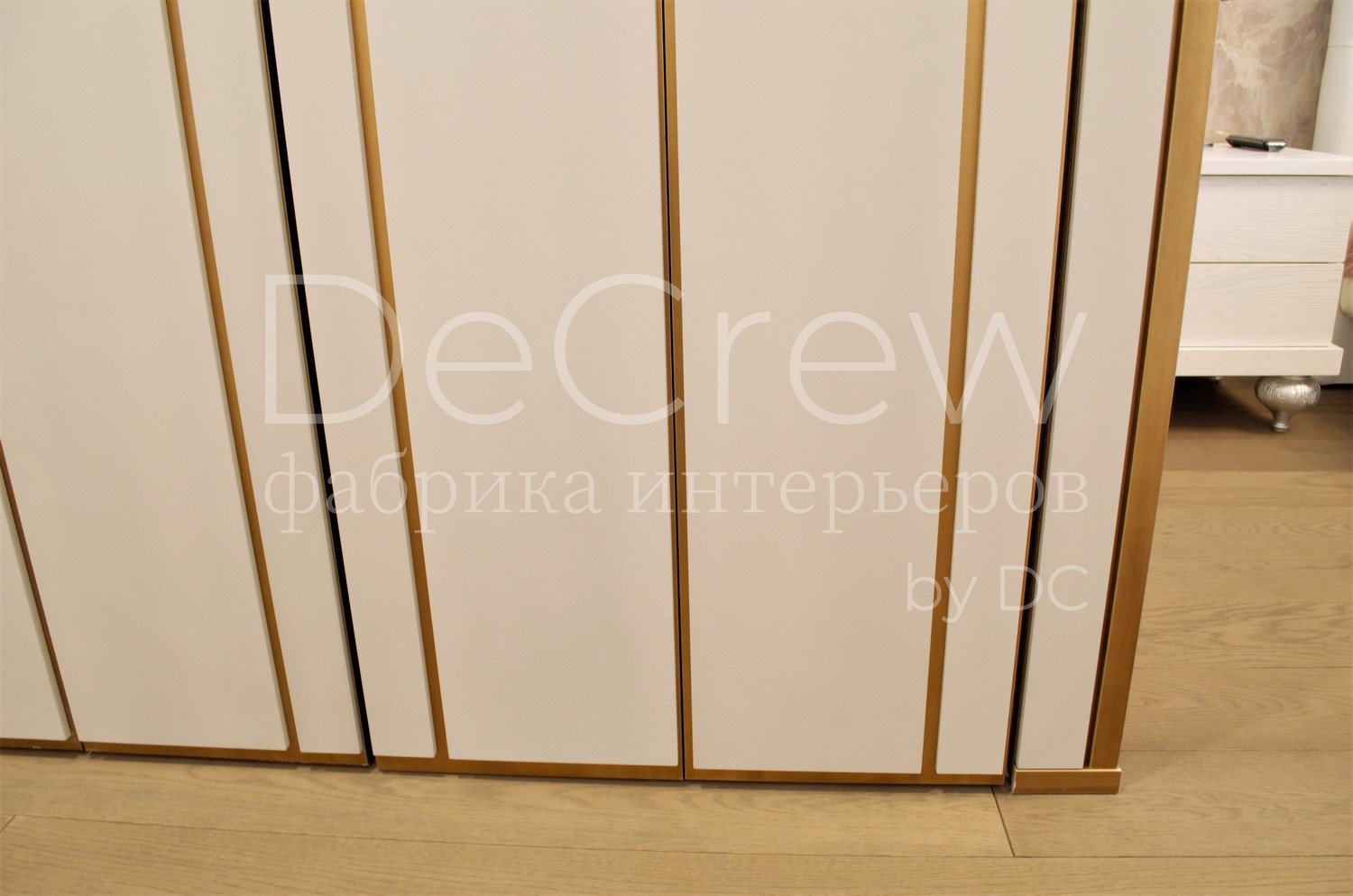 Открываются нажатием на створку. Начинка гардероба выполнена из ЛДСП фирмы (Egger) по желанию заказчика.