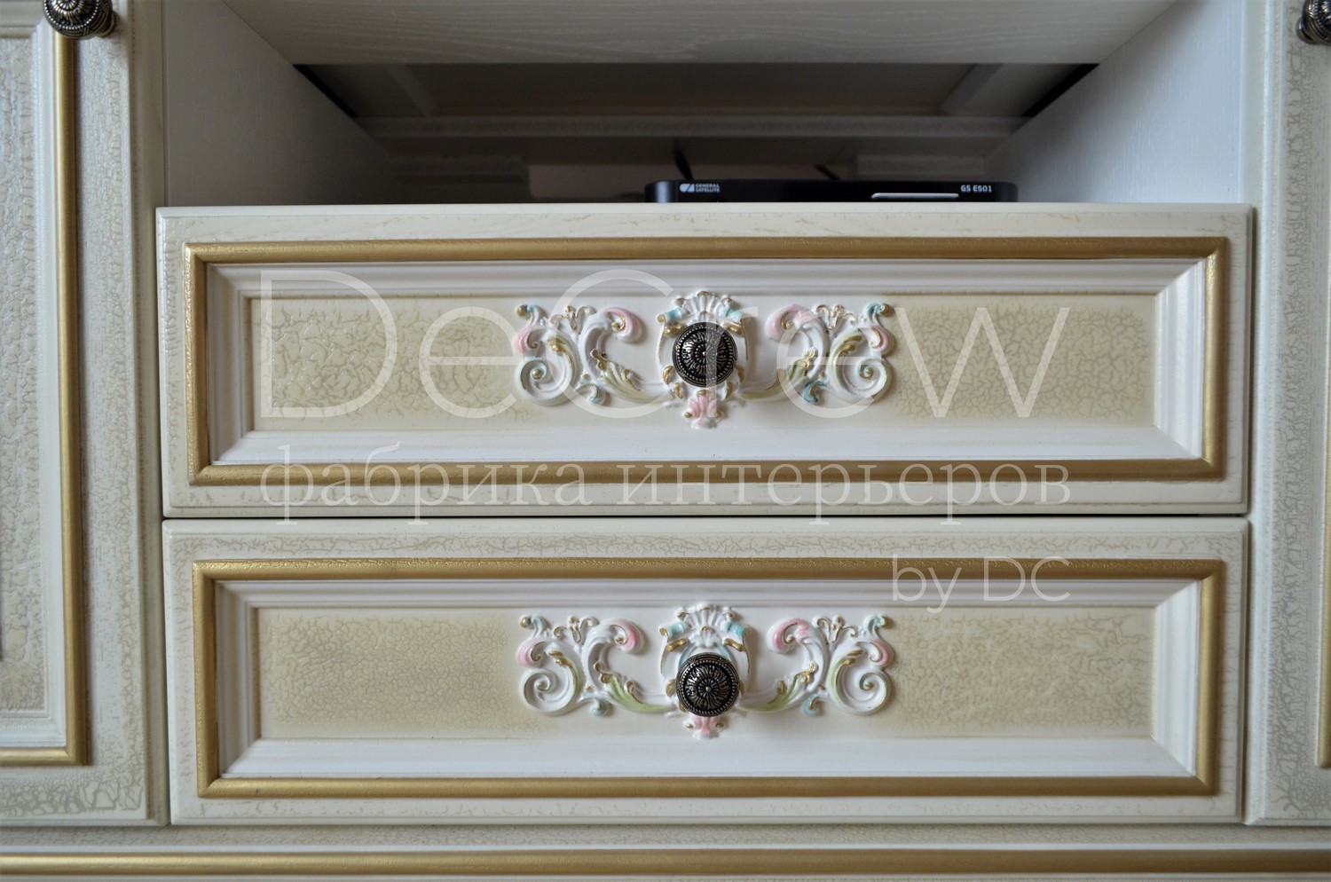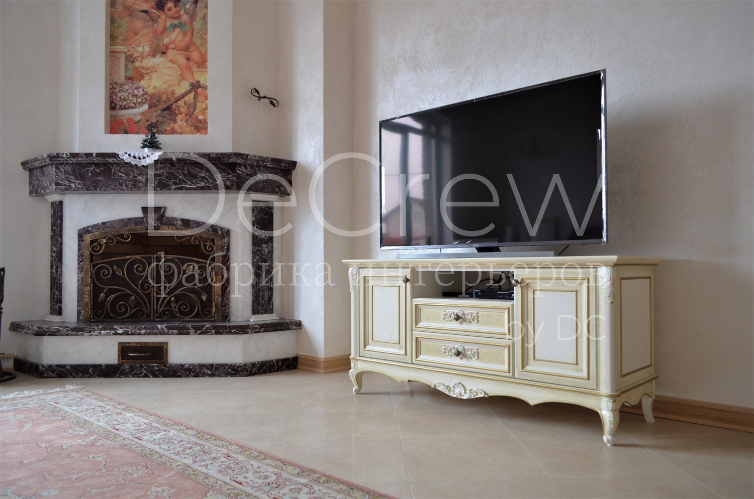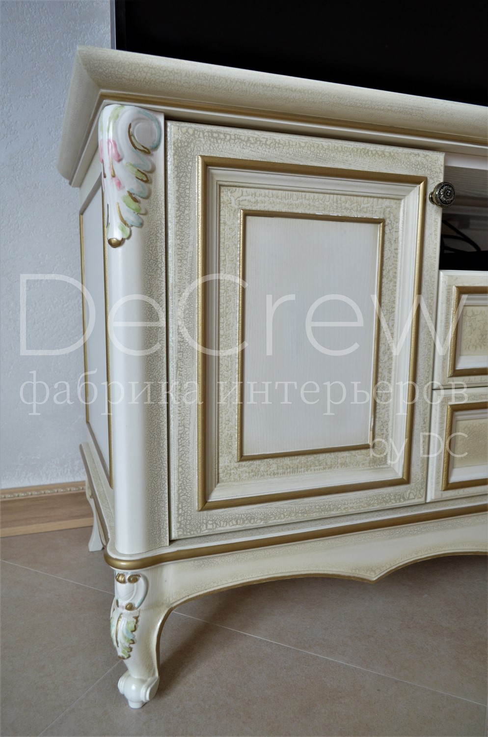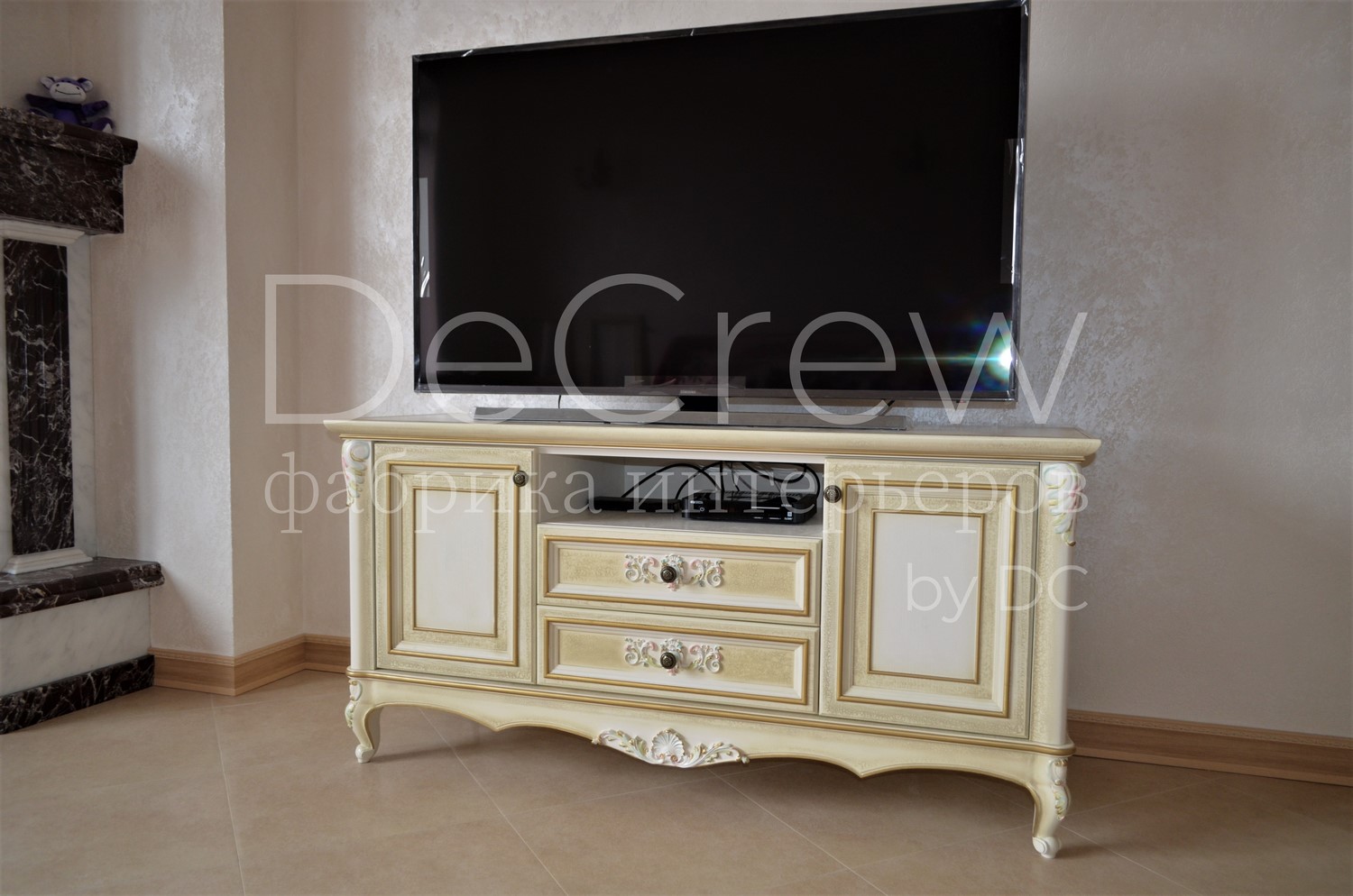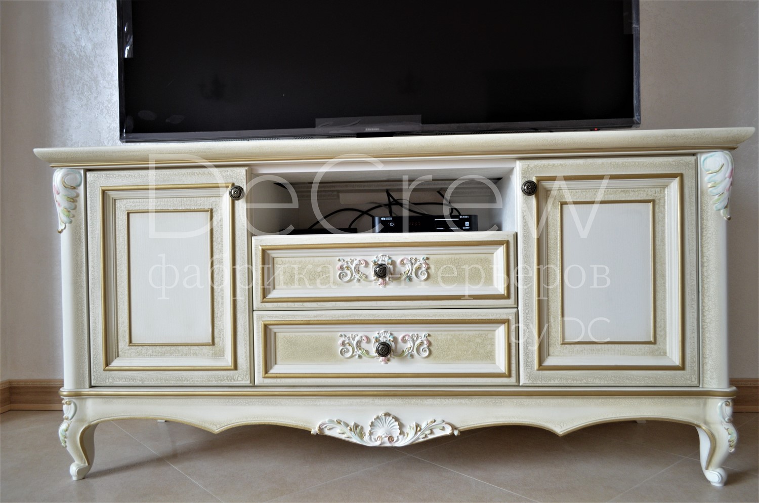 Тумба выполнена в классическом стиле. Входит в комплект мебели для гостиной.